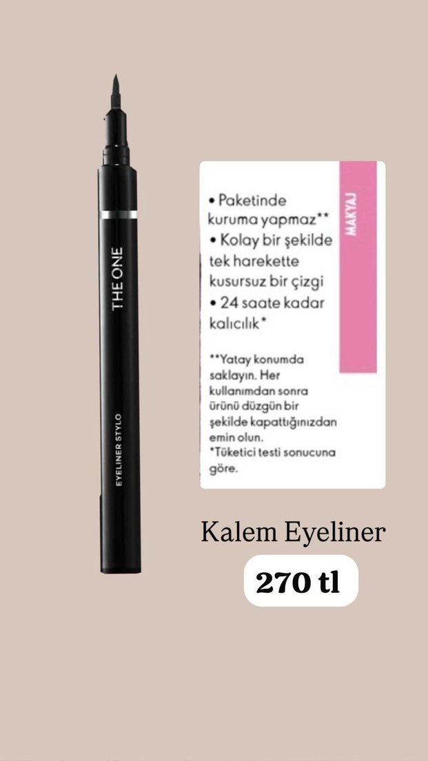 The One siyah kalem eyeliner, tek harekette kusursuz çizgi sağlar. Yatay konumda saklandığında kurumaz ve 24 saate kadar kalıcılık sunar.
