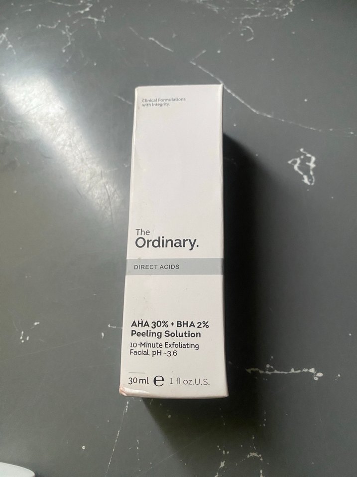 The Ordinary AHA %30 + BHA %2 Peeling Çözümü, 10 dakikalık eksfoliye edici yüz bakımı sunar. 30 ml şişede, pH değeri 3.6'dır.✨