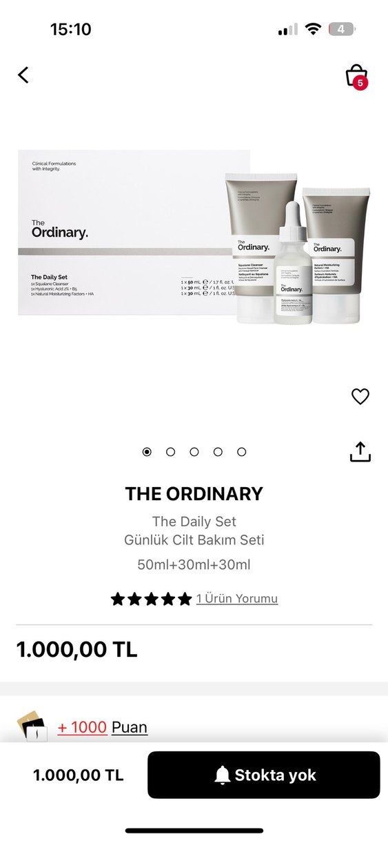 The Ordinary Günlük Cilt Bakım Seti, 50ml temizleyici, 30ml serum ve 30ml nemlendirici içerir. Ürünü sephoradan aldım fakat açmadım elimde fazla ürün var diye satıyorum