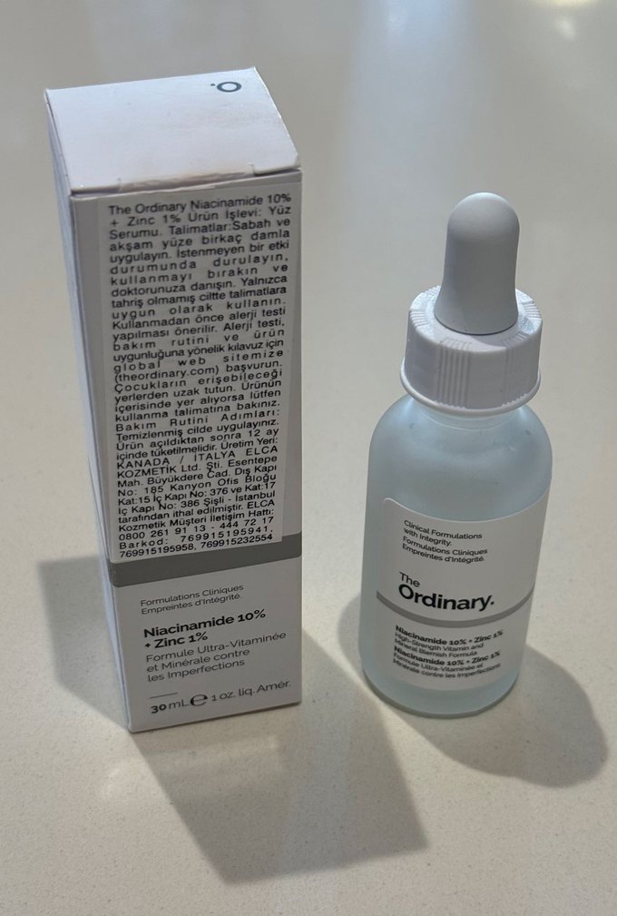 The Ordinary Niacinamide %10 + Çinko %1 serum, 30 ml damlalıklı şişede. Cilt görünümünü iyileştirir, yağ kontrolü sağlar. Günlük temiz cilde uygulanır.