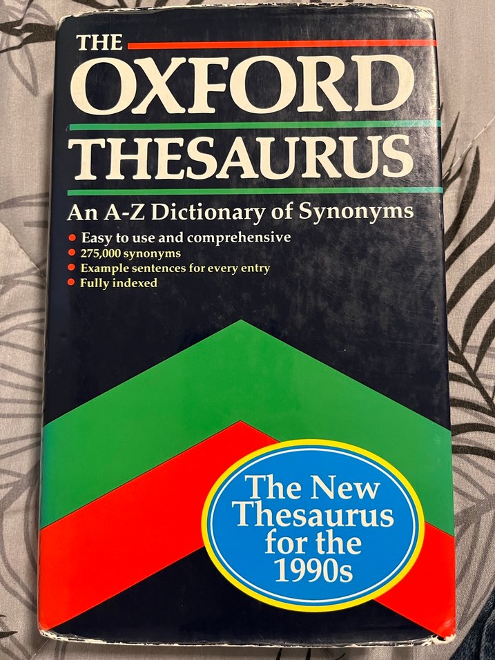 The Oxford Thesaurus, 1990'lar için kapsamlı bir A-Z eşanlamlılar sözlüğüdür. 275.000 eşanlamlı, her giriş için örnek cümleler ve tam indeks içerir. Gordugunuz uzere saglam.
