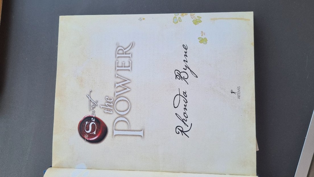 Rhonda Byrne imzalı The Power, mavi kapaklı bir kitap. İlham verici içerik sunar.