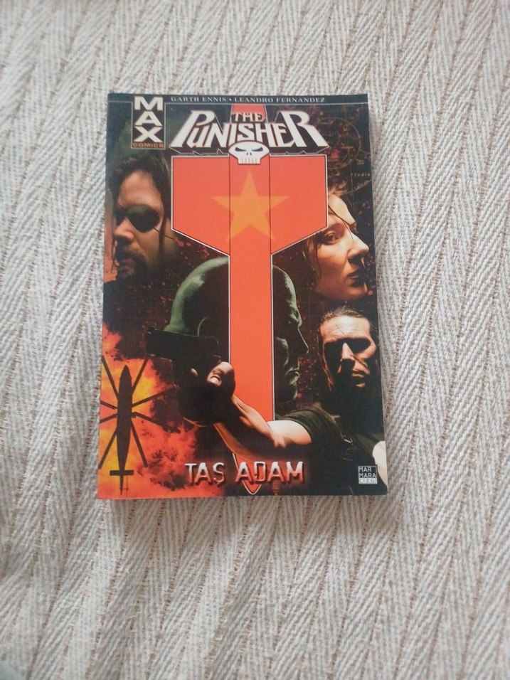 The Punisher çizgi romanı, Taş Adam başlıklı, yoğun karakterler ve dikkat çekici kırmızı tasarıma sahip. ♂️Marvel - The Punisher Max Cilt 7 - Taş Adam Garth Ennis 2016 yili 1,baski cok temiz kondisyonda