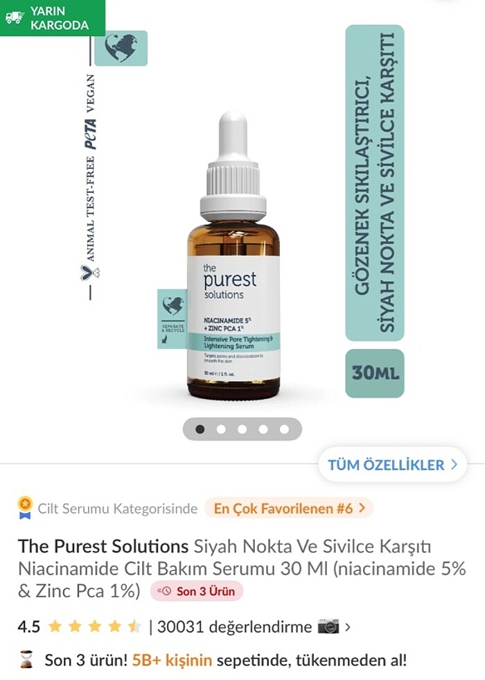Siyah nokta ve sivilce karşıtı cilt bakım serumu bir defa denemek için kullanıldı şişe komple doludur uyguna satıyorum