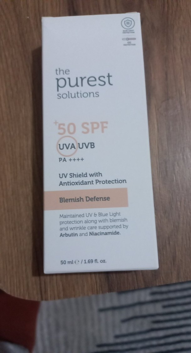 The Purest Solutions güneş koruyucu, 50 SPF ve PA++++ koruma sağlar. Arbutin ve Niacinamide ile leke ve kırışıklık bakımını destekler, UVA, UVB ve mavi ışığa karşı koruma sunar. 50 ml boyutundadır. ☀️