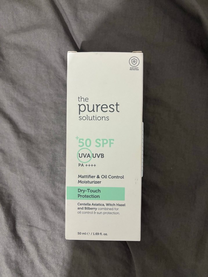 The Purest Solutions 50 SPF güneş koruyucu, UVA ve UVB koruması sağlar. Yağ kontrolü ve matlaştırıcı etkisi ile nemlendirir. Centella Asiatica, Cadı Fındığı ve Böğürtlen içerir. ☀️