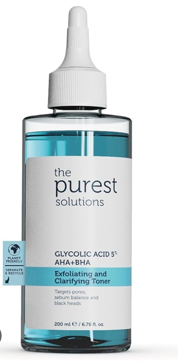 The Purest Solutions 5% glikolik asit içeren AHA+BHA tonik, gözenekleri hedefler, sebum dengesini sağlar ve siyah noktaları azaltır.