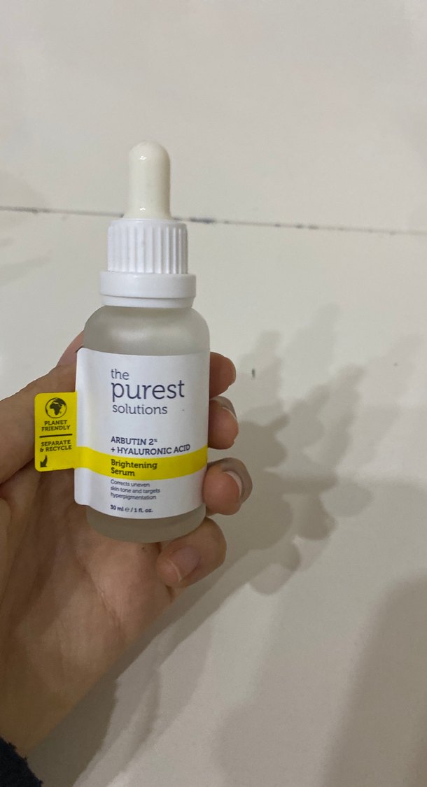 The Purest Solutions serumu, cildi aydınlatmak ve lekeleri azaltmak için %2 Arbutin ve Hyaluronik Asit içerir. 30 ml şişede, damlalıklı kolay kullanım sağlar.