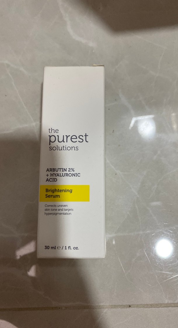 The Purest Solutions aydınlatıcı serum, %2 Arbutin ve Hyaluronik Asit içerir. Cilt tonunu eşitler ve hiperpigmentasyonu hedefler. 30 ml şişe.
