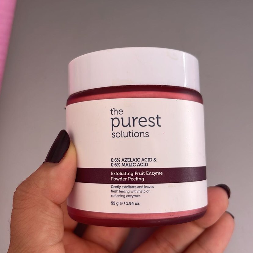 The Purest Solutions Azelaik ve Malic Asit Kırmzı Toz Peeling iki kez kullandım görüldüğü gibi %98i duruyor cildi anında yumuşacık ve pürüzsüz yapıyor veni sadece kokusu biraz rahatsız etti yoksa efsane ürün The Purest Solutions Azelaik ve The Purest Solutions, 0.6% azelaik asit ve malic asit içeren meyve enzimli peeling tozu ile cildi nazikçe eksfoliye eder