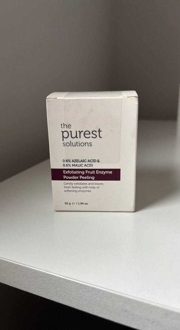 The Purest Solutions peeling tozu, %0.6 azelaik asit ve %0.6 malik asitli. Ürün kutusu hiç açılmamılştır. Bantlı bi şekilde duruyor