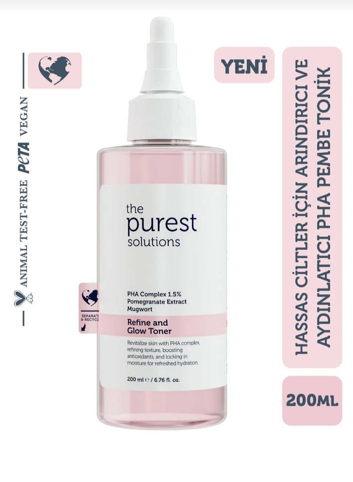 The Purest Solutions 1,5% PHA Kompleks ve Mugwort özlü tonik, hassas ciltleri nazikçe arındırır ve aydınlatır, nemlendirir. 200ml.