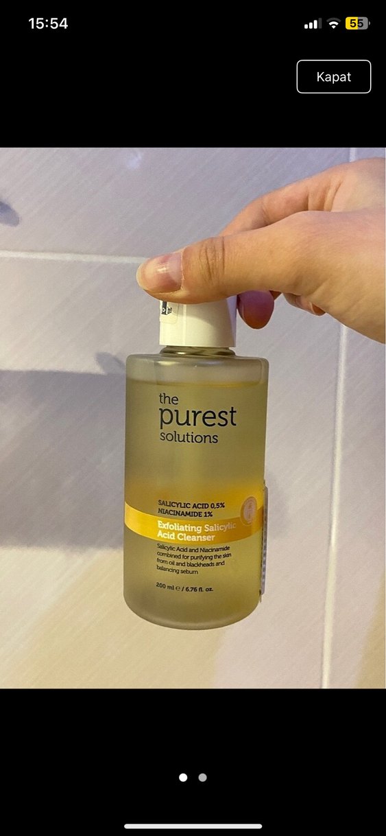 The Purest Solutions salisilik asit ve niasinamid içeren, yağlı ve lekeli cildi arındıran peeling etkili temizleyici.