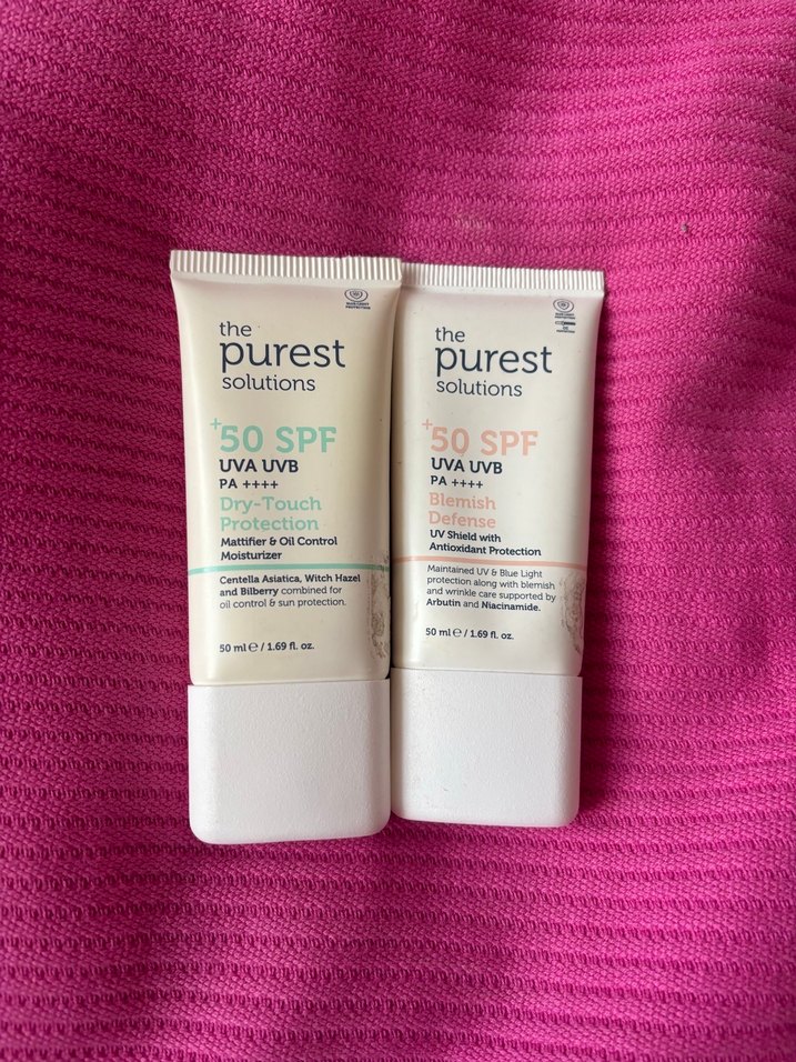 The Purest Solutions SPF 50, UVA ve UVB koruması sağlar. Bir çeşidi yağı kontrol edip matlaştırırken, diğeri leke karşıtı ve antioksidan koruma sunar. Hafif ve kuru dokunuşlu koruma sağlar. ☀️