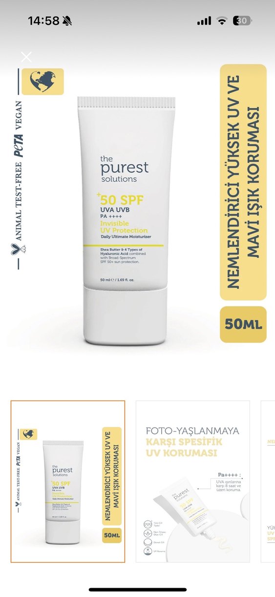 The Purest Solutions SPF 50 Güneş Koruyucu 50ml