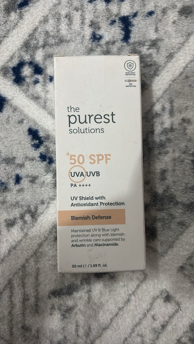 The Purest Solutions SPF 50 güneş koruyucu, UVA ve UVB koruması sağlar. Arbutin ve niasinamid destekli leke savunması ve antioksidan koruma içerir. 50 ml formül, mavi ışık ve kırışıklıklara karşı korur. ☀️