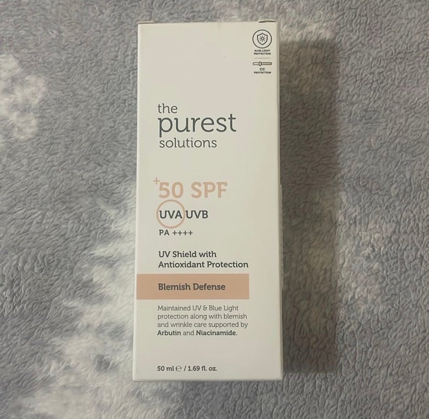 The Purest Solutions SPF 50 güneş koruyucu, UVA ve UVB kalkanı ile antioksidan koruma sağlar. Arbutin ve Niacinamide içeriğiyle leke savunması ve mavi ışık koruması sunar. 50ml ürün, kırışıklık bakımını destekler. ☀️