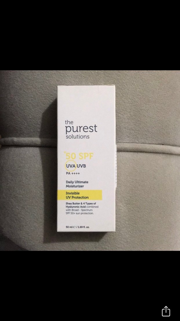 The Purest Solutions SPF 50 güneş koruyucu, geniş spektrum UVA ve UVB koruması sağlar. Shea yağı ve 4 çeşit hyaluronik asit içerir, günlük nemlendirici ve görünmez UV koruma sunar.