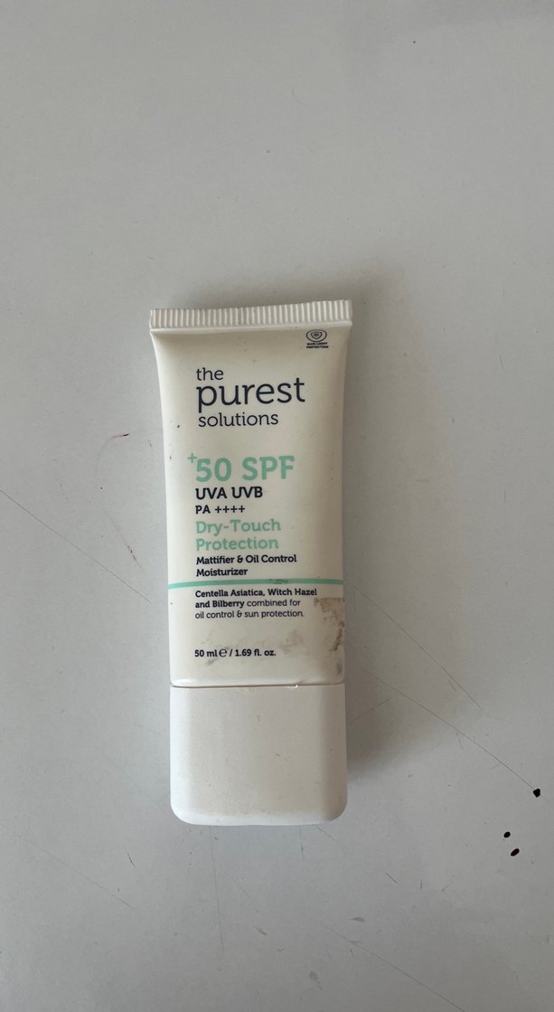 The Purest Solutions SPF 50 güneş kremi yüksek UVA ve UVB koruması sağlar. Kuru dokulu, yağ kontrolü ve nemlendirme özellikleri içerir.
