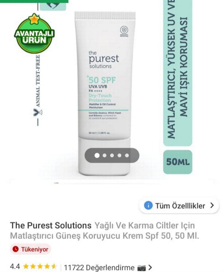 The Purest Solutions SPF 50 güneş kremi, yağlı ve karma ciltler için matlaştırıcı etki sağlar. Yüksek UVA/UVB koruması ve matlaştırıcı Dry-Touch dokusu ile parlaklığı kontrol eder.
