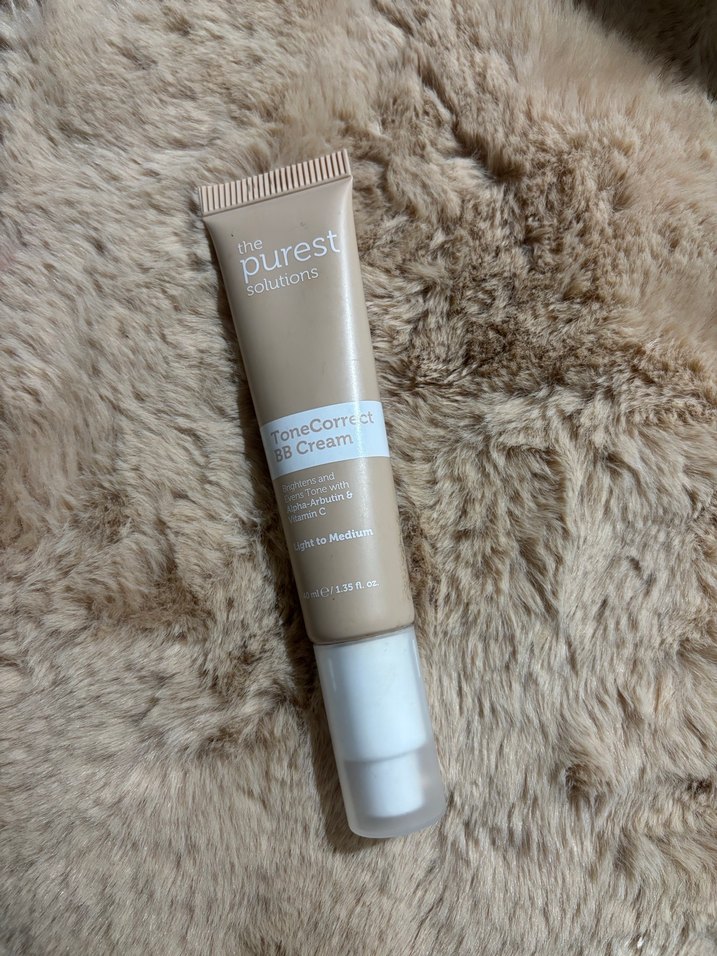 The Purest Solutions Ton Düzeltici BB Krem, açık ve orta tonlar için pastel bej renginde cilt tonunu eşitler ve doğal bir görünüm sağlar.