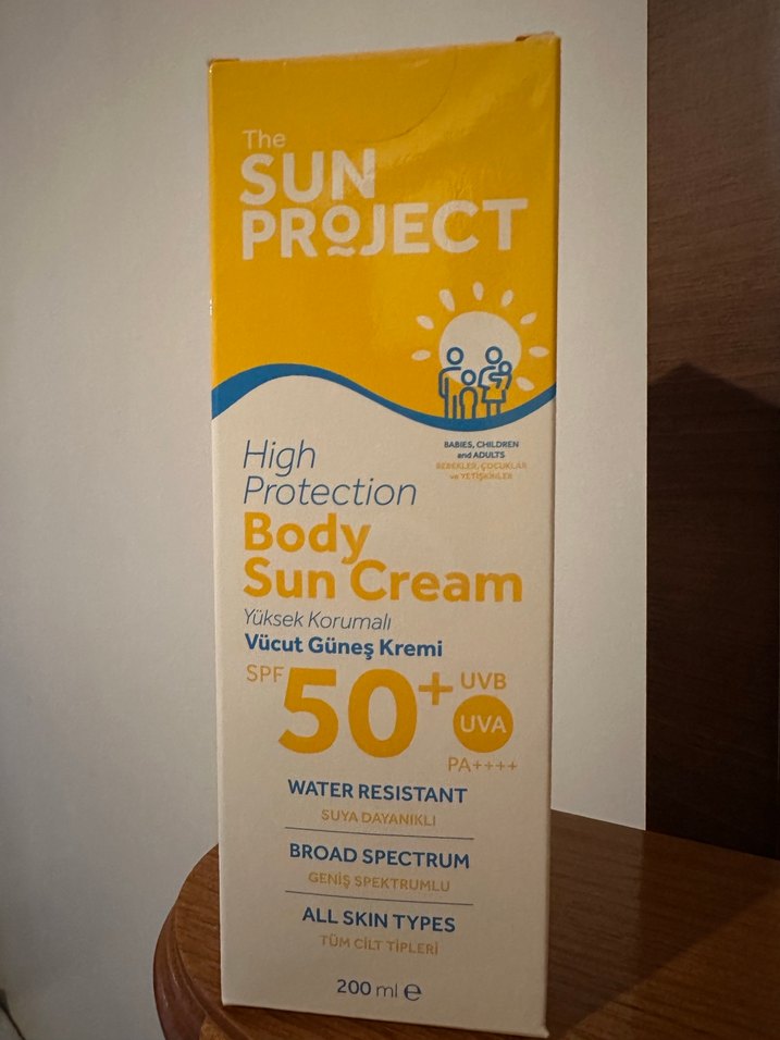 The Sun Project Vücut Güneş Kremi SPF 50+ ile yüksek koruma sağlar. Suya dayanıklı ve tüm cilt tipleri için uygundur. Geniş spektrumlu formülü güneşten etkili koruma sunar. ☀️