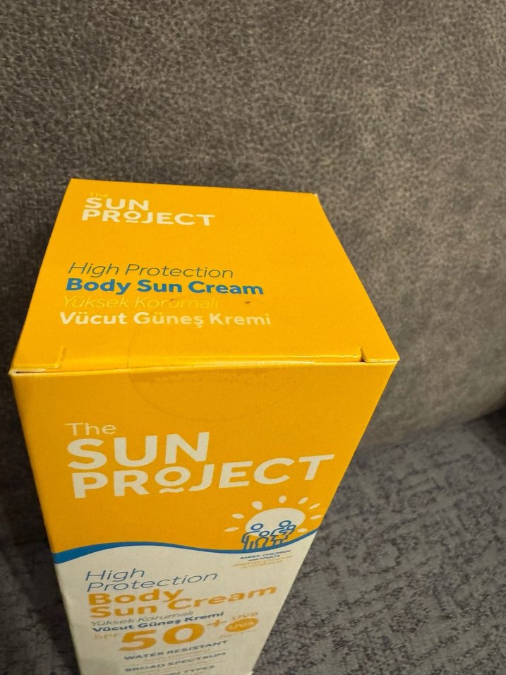 The Sun Project Vücut Güneş Kremi, SPF 50 ile yüksek koruma sağlar ve cildinizi güneşin zararlı ışınlarından korur. Vücut kullanımı için uygundur. ☀️ Ürün hiç açılmadı.