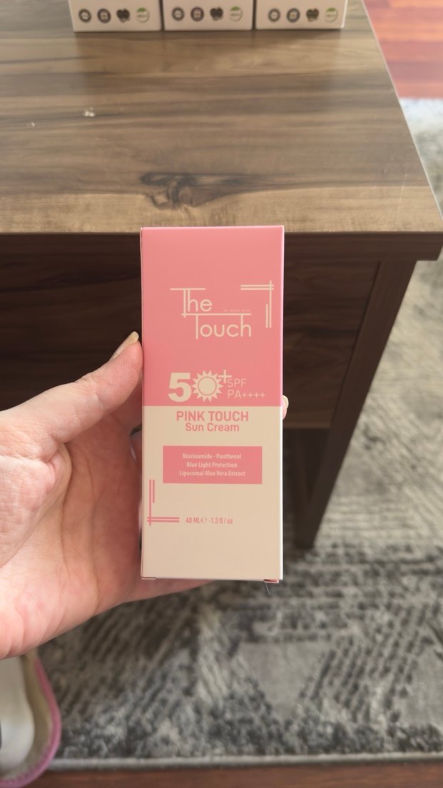 The Touch Pembe Tonlu güneş kremi SPF 50 koruma sağlar. UVA ve UVB ışınlarına karşı korurken cilde parlaklık verir. Günlük kullanım için uygundur. 40 ml’dir.