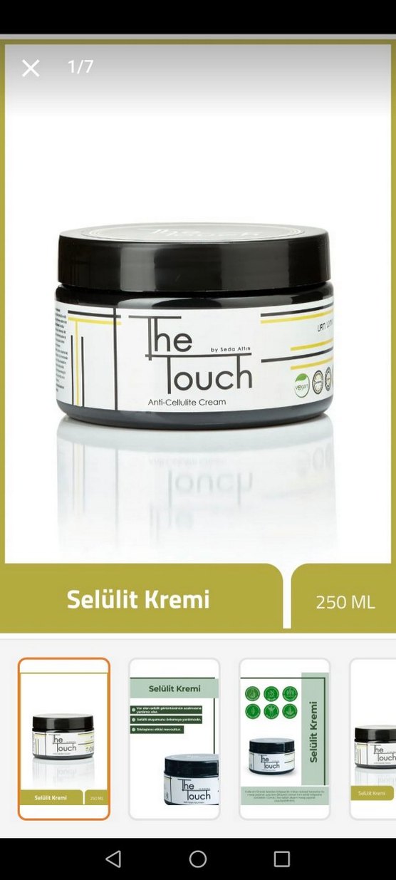 The Touch Selülit Kremi 250 ML kavanozda, pürüzsüz formülüyle selülit görünümünü azaltmaya yardımcı olur.