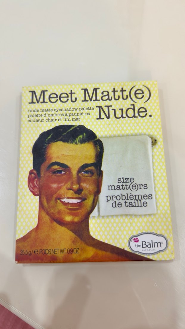 theBalm Meet Matt(e) Nude, pastel bej tonlarında mat göz farları içeren 25,5g'lık palet. Retro tarzında kutusunda.