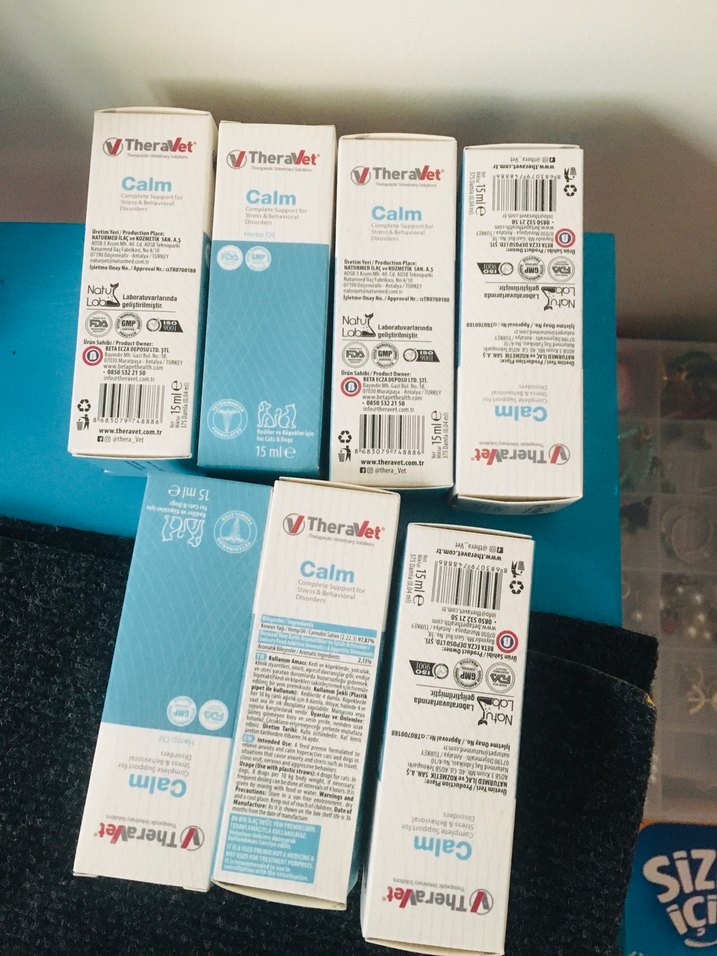 Köpeğim duygusal bir durum yaşadı ve veteriner bunu atlatması için bize TheraVet önerdi ve 6 ay mutlaka kullanmalı dedi. Özellikle asla yan etkisi yok dedi ama köpeğimde bu damla her gün düzenli kullanımda iştahsızlık yaptı ve durumunu daha kötü yaptı. Lakin bize 6 aylık dendiği için baya almış bulunduk. 2 tanesini kendimize ayırdık seyahat vb durumlarda kullanırız diye ama diğerleri bizim için oldukça fazla. Bu 7 pakette hiç açılmadı ve hepsinin son kullanma tarihleri 02.2028 Internette uygun fiyatlıların hepsinin son kullanma tarihleri çok kısa süreli olduğu için fiyatlar o şekilde. Istanbul içindeyseniz elden iletebilirim. Farklı şehir için almak isteyenlere kargoyu ben karşılayacağım. Bu arada ürünlerin hala faturası da duruyor. Faturalarını da iletebilirim.