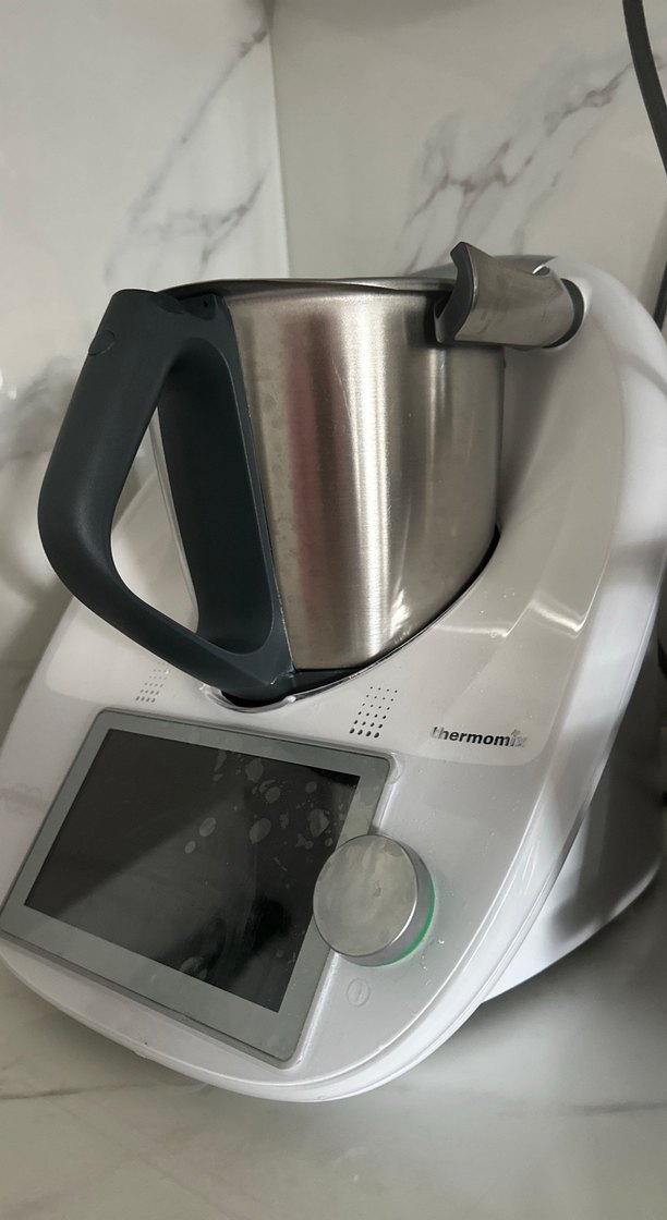 Thermomix mutfak robotu, gri saplı ve paslanmaz çelik karıştırma kabına sahiptir. Dijital ekran ve kontrol düğmesi bulunur. Fyt:48.000 tl