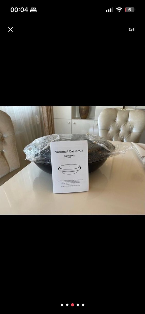 Thermomix Varoma güveç, siyah kapaklı ve Varoma buhar sistemiyle uyumludur. Dayanıklı ve kullanışlı bir mutfak aksesuarıdır. Hiç kullanılmadı.Taş güveç çok güzel ve hızlı ekşi maya ekmek,et vs. pişirilir ocakta veya fırında.7,5 lt.Asıl fiyatı 7.000₺.Uyguna vereceğim maalesef mutfağımda yerim yok.