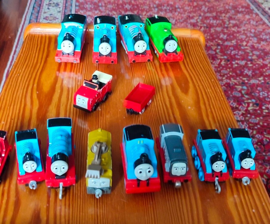 Çeşitli karakterler ve aksesuarlar içeren renkli Thomas tren oyuncak seti Thomas&Friends Durumlarını sorunuz