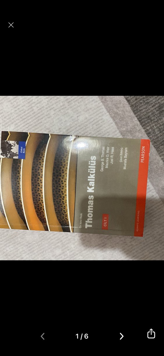 Thomas Kalkülüs 6. Baskı, George B. Thomas, Maurice D. Weir ve Joel Hass tarafından yazılan kapsamlı bir kalkülüs ders kitabıdır. Biraz su lekesi vardır. Onun dışında bir defosu yoktur. Çizik dahi yoktur.