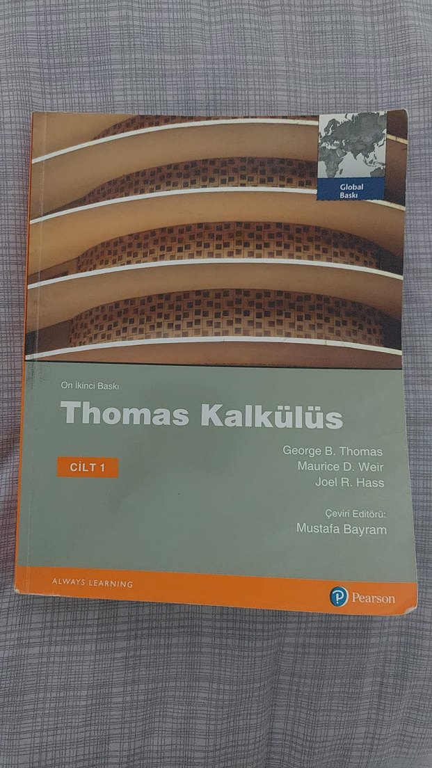 George B. Thomas, Maurice D. Weir ve Joel R. Hass'in yazdığı, Mustafa Bayram'ın çevirisiyle Pearson yayınevi tarafından basılan Thomas Kalkülüs kitabının birinci cildi. Temel kalkülüs konularını içerir.