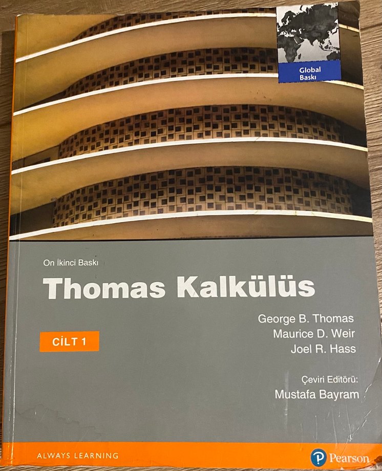 George B. Thomas, Maurice D. Weir ve Joel R. Hass tarafından yazılan Thomas Kalkülüs Cilt 1, Mustafa Bayram tarafından çevrilmiş üniversite kitabıdır. Matematiksel analiz konularını içerir.
