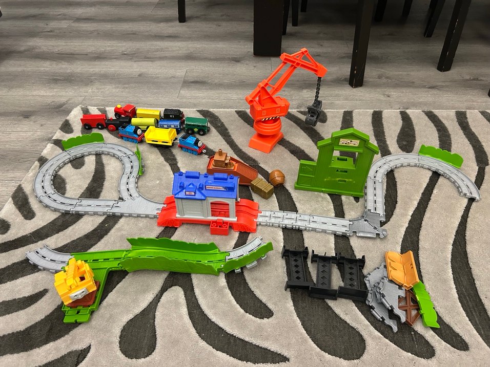 Orijinal ray seti, raylar, vinç, binalar ve çeşitli tren vagonları içerir. Eğri raylar, yeşil rampa ve askılı kırmızı vinç bulunur. Orijinal diğer Thomas setleri ve trenleri ile uyumludur.11 adet tren fiyata dahil değildir. Ayrı ilanda satılır. Resimlerde görünen tüm oyuncaklar dahil set 999₺