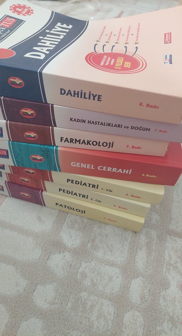 Dahiliye, Kadın Hastalıkları, Farmakoloji, Genel Cerrahi, Pediatri ve Patoloji konularını içeren tıbbi kitap seti .Görseldeki kitaplar satılık