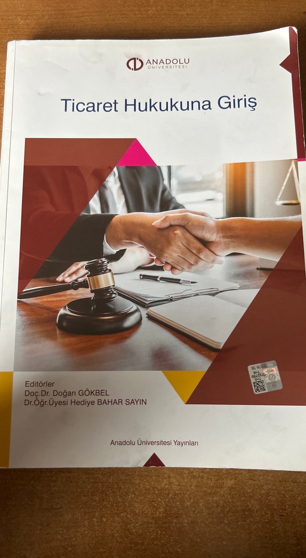 Anadolu Üniversitesi Yayınları tarafından yayımlanan, Dr. Öğr. Üyesi Hediye Bahar Sayın ve Doç. Dr. Doğan Gökbel'in editörlüğünde Ticaret Hukukuna Giriş kitabı.