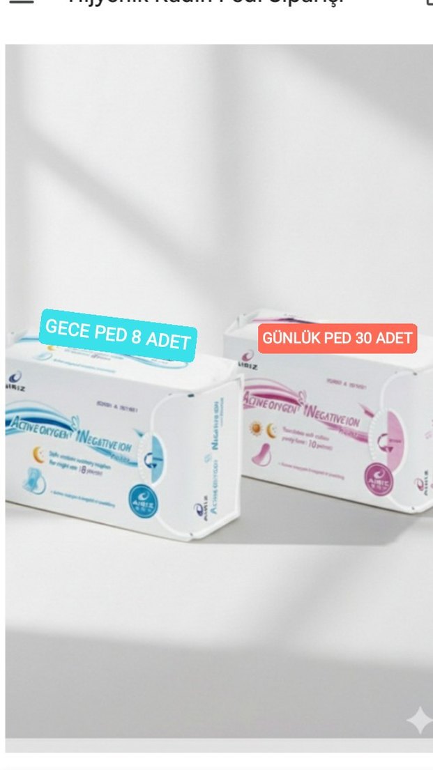 30 adet günlük ped ve 8 adet gece pedi içeren, elastik ve baskılı tasarıma sahip ped seti. ürün sıfırdır bandrollüdür satış amaçlıdır