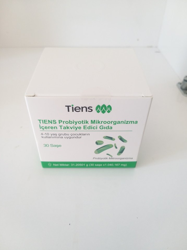 Tiens probiyotik mikroorganizma içeren takviye edici gıda, 4-10 yaş çocuklar için uygun, 30 saşe içerir. İyi bakterilerin vücudumuzdaki dağılımını yaş, cinsiyet, kullanılan ilaçlar, alkol ve beslenme düzeni etkiler. Probiyotikler, bağışıklık sisteminin desteklenmesine katkıda bulunur. Yiyeceklerin sindirimine yardım