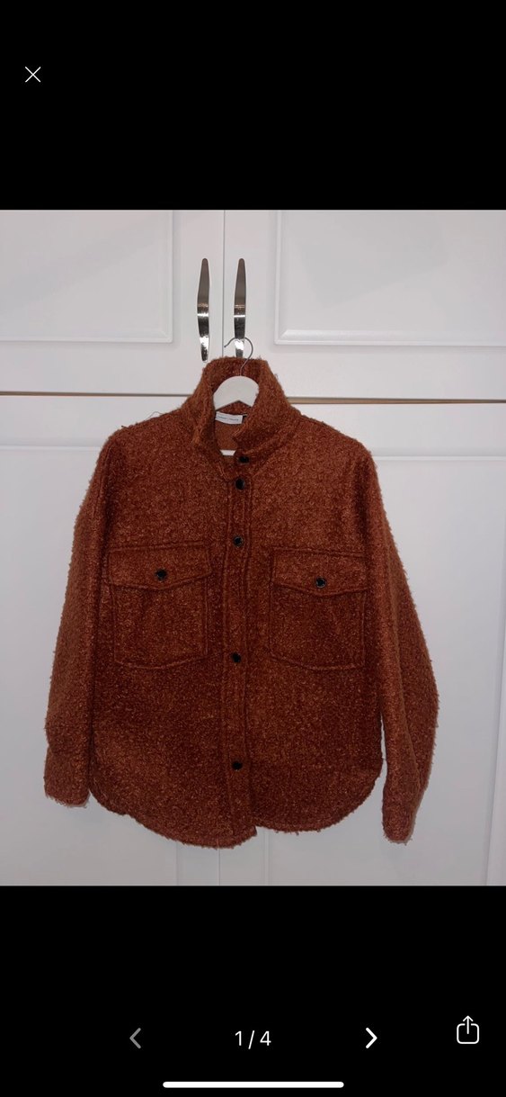 Bu kahverengi ceket, uzun kollu ve düğmeli ön kısmıyla yumuşak ve rahat bir dokuya sahiptir. Salaş kesim ve kesimli yakasıyla günlük kullanıma uygundur. Kiremit rengi