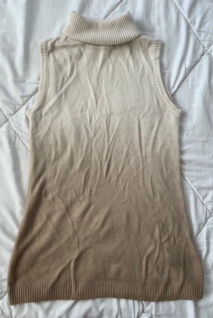 s-m uyumlu yeni gibi. Kolsuz, balıkçı yaka ve vücuda oturan kesime sahip, yumuşak keten kumaştan yapılmış bej bluz. Desensiz tasarımı minimalist ve bohem stili yansıtır, açık hava için uygundur.