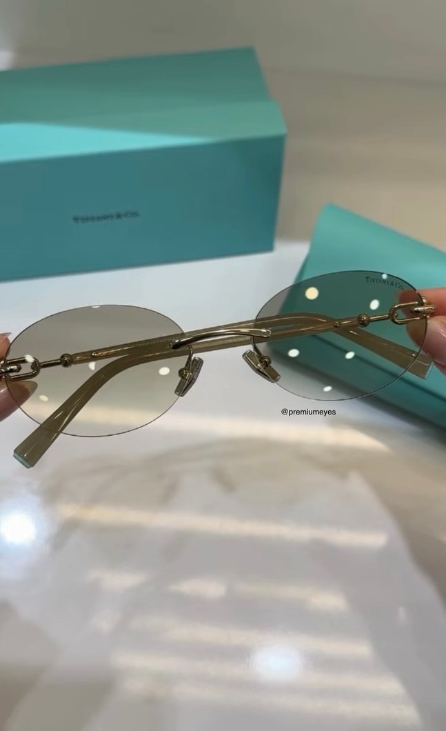 Tiffany & Co. bej renkte, minimalist ve çağdaş tasarıma sahip kadın gözlüğü, klasik zarafeti yansıtıyor.