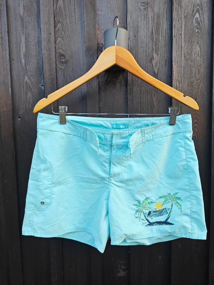 Düğmeli, bol kesim, pastel mavi denimden yapılmış, baskılı plaj temalı şort. kumaşı Cok kaliteli. L uyumlu , aciliyetimiz var bir iki aya kadar satılmayanlar elden çıkarılıp ilandan kaldırılacak.