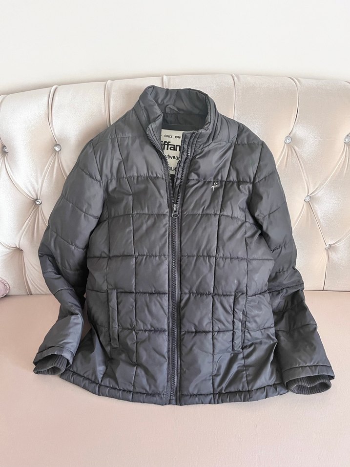 Tiffany kadın şişme mont .Herhangi bir deformesi,yırtık vs yok .Gayet iyi durumda .Beden olmadığı için satışta . Boy 70cm .Omuz 42. Koltukaltı 54.Basen 54..Kol boyu 67.Kol içindeki triko bileklikle beraber kol boyu 70cm