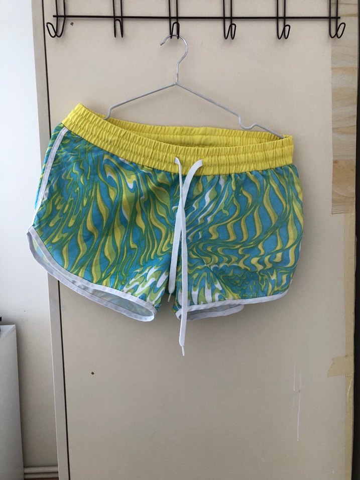 Renkli tie-dye desenli, lastikli ve bağcıklı mini şort. Dar kalıplı kesim, sokak stili ve plaj için uygun. Sentetik kumaştan yapılmıştır. Filesi yok ama denizde bikini altı olabilir kuruması zor değil