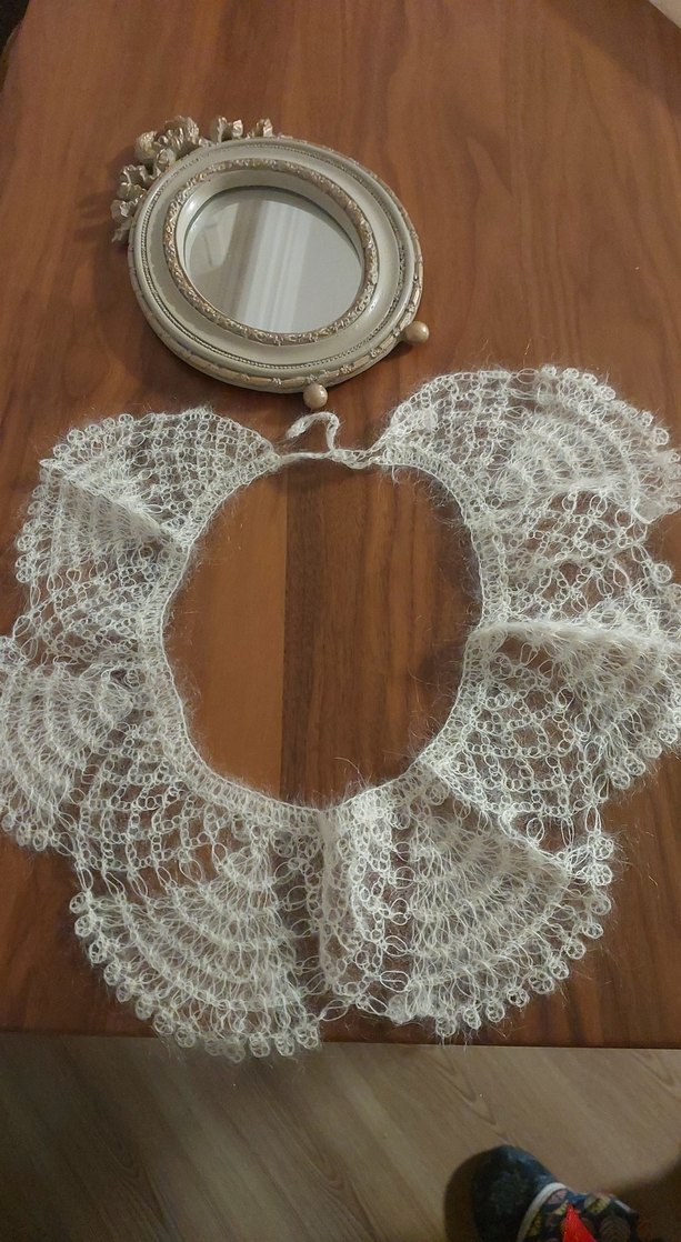 Krem tiftik el işi yaka.Yumuşacık,zarif işçilik. Sıfır kullanılmadı.
