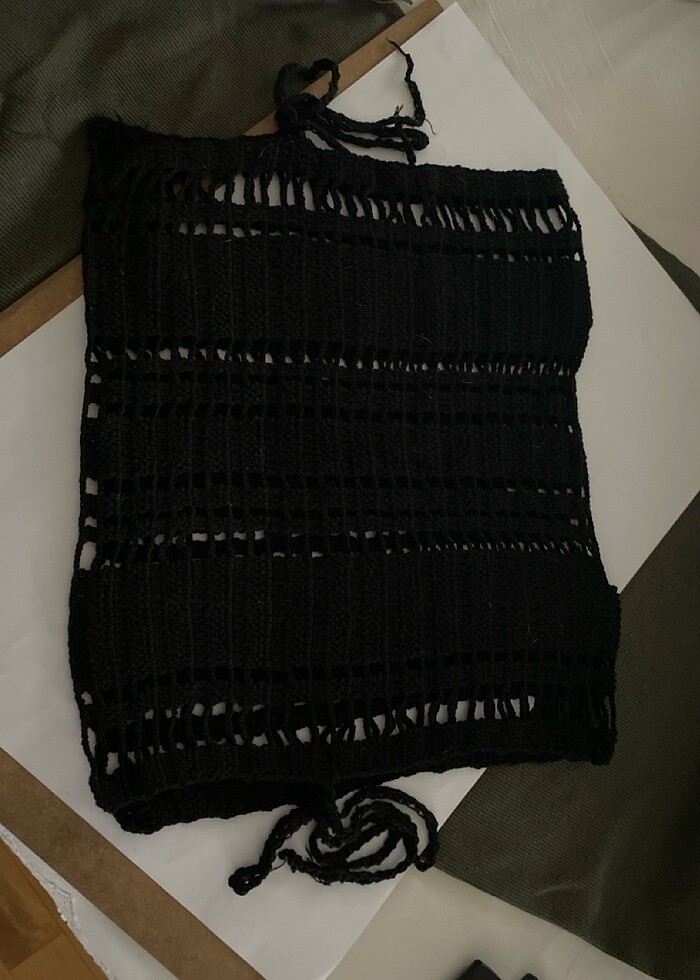 El örgüsü yanları bagcıklı gömlek yada bady üzerine giyilebilir